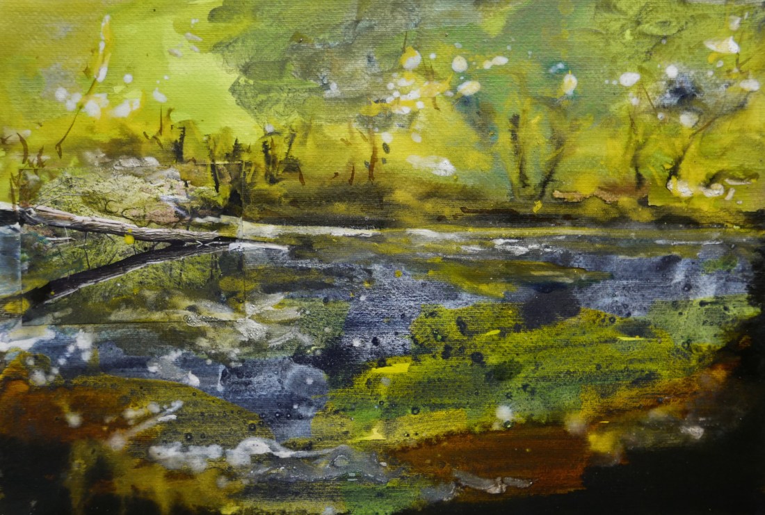 In 2012, 2017 en 2018 heb ik enkele series gemaakt met foto's van de meertjes op de Sint Jansberg te Plasmolen. De foto vormt het uitgangspunt voor een abstract schilderij. Pigment gebonden met acrylaatbinder en water (ik maak mijn verf zelf met pigmenten en bindmiddelen) op speciaal papier dat de waterachtige verf goed kan vasthouden. … Doorgaan met het lezen van Plasmolen Jansberg