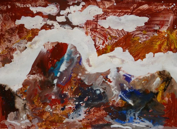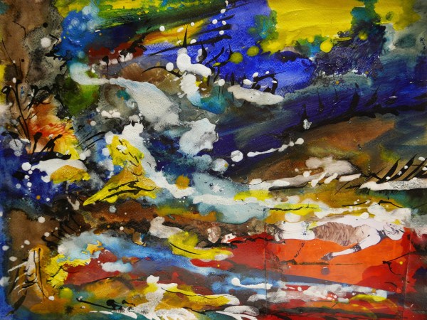 Een andere dichter, een van mijn grote favorieten, Roberto Juarroz, drukt dit weer anders uit. Zijn gedichten zijn touwladders naar de hemel, ze verbinden hemel met aarde, en aarde met hemel zoals mijn geschilderde landschappen waarin de bergen een prominente plaats innemen omdat ze naar de hemel reiken. De horizon, raakvlak van hemel en aarde, zijn wij ook zelf. De horizon wenkt ons, maakt ons bekend met de wereld waarin wij leven, waaruit we voortkomen en waar we naar toe gaan, maar de horizon zijn we ook zelf omdat onze taal, onze woorden, waardes formuleren, een houvast, een weg om te gaan, een horizon om naar toe te bewegen. Vrede, goedheid, rechtvaardigheid, zijn getuigen van die woorden tot waarden geworden, handreikingen om je leven samen met anderen gestalte te geven. Ondanks, ondanks dat je weet, dat je beseft dat je leven eindig, o zo eindig is en zo beperkt en kortstondig. Zoals Juarroz dicht: