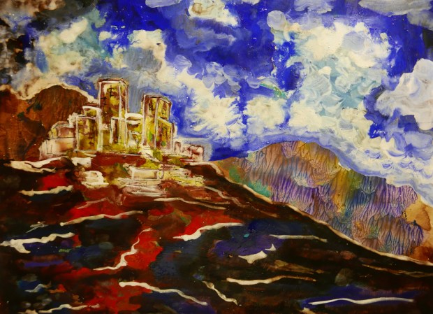J In einem selbst unsichtbaren Schauen, das sich so gesammelt der Leere entgegenträgt, daß in ihr und durch sie das Gebirge erscheint.