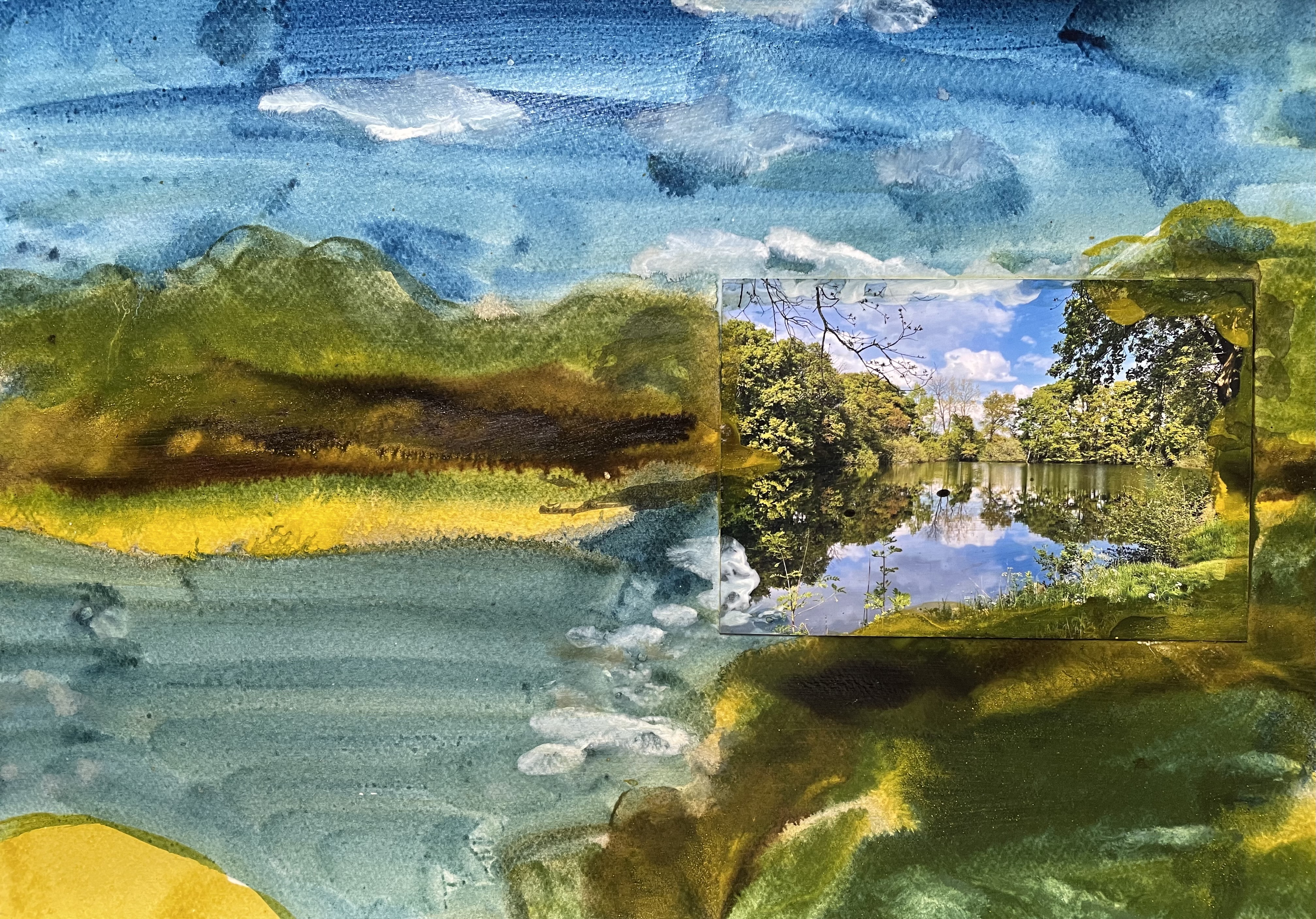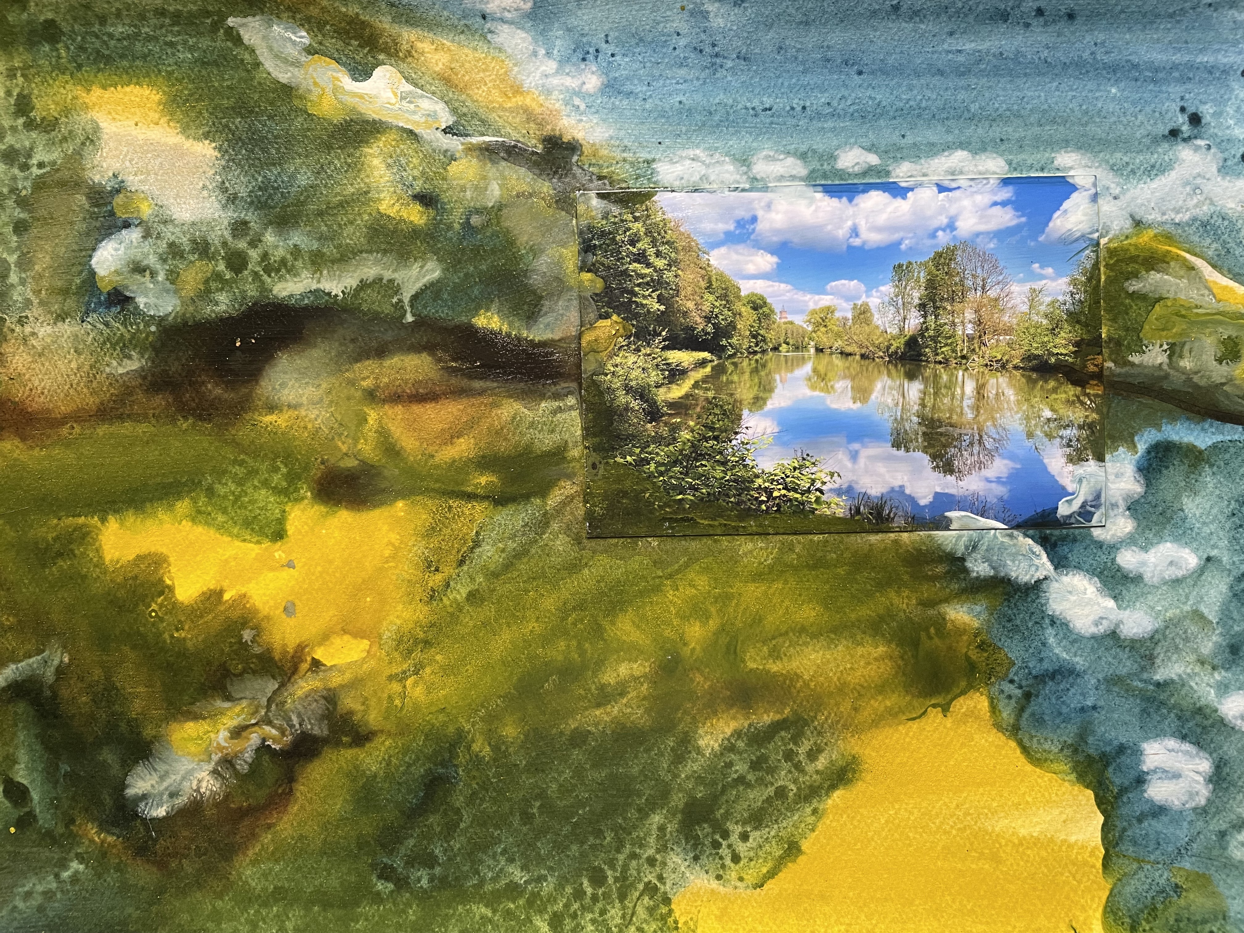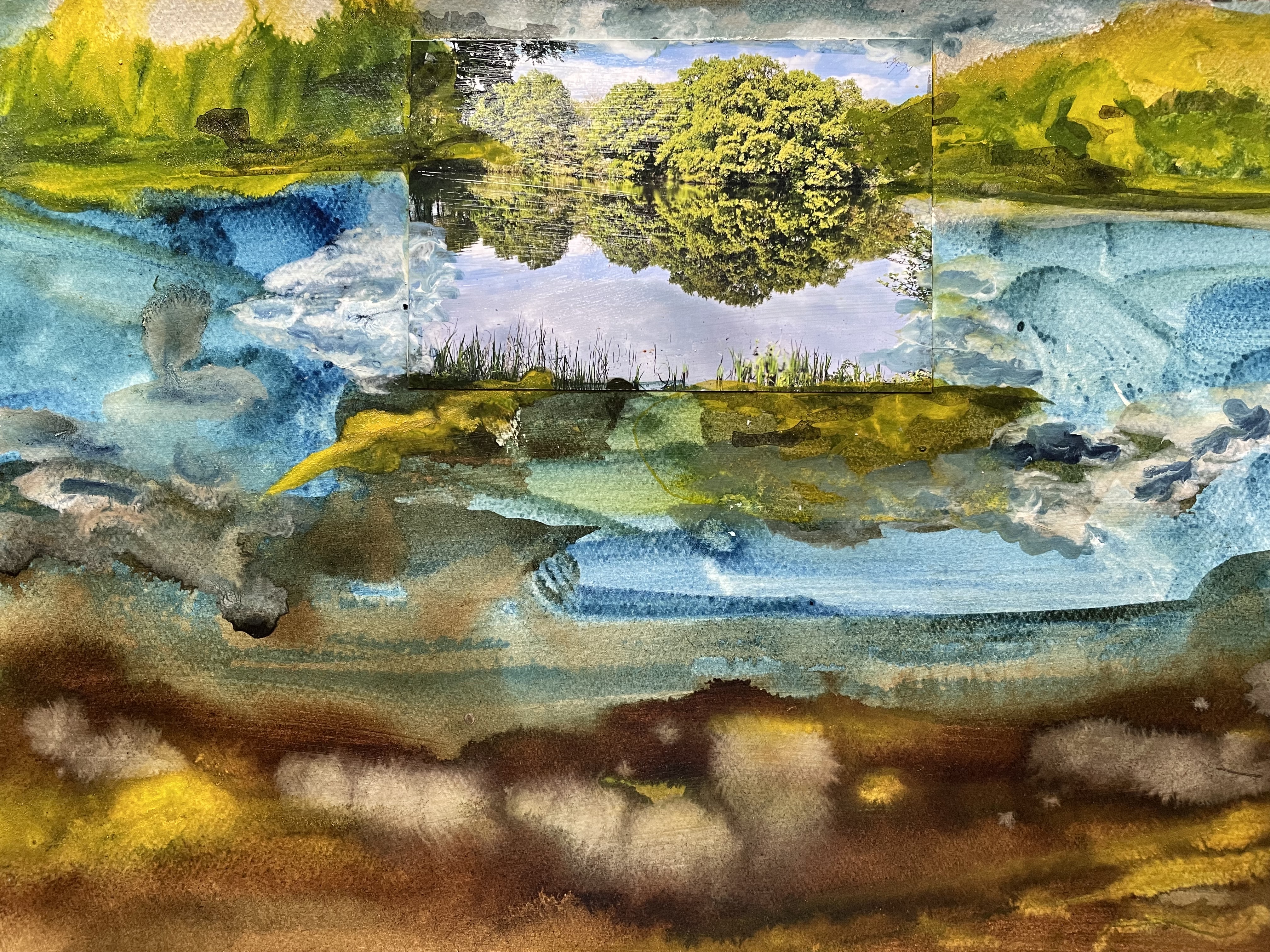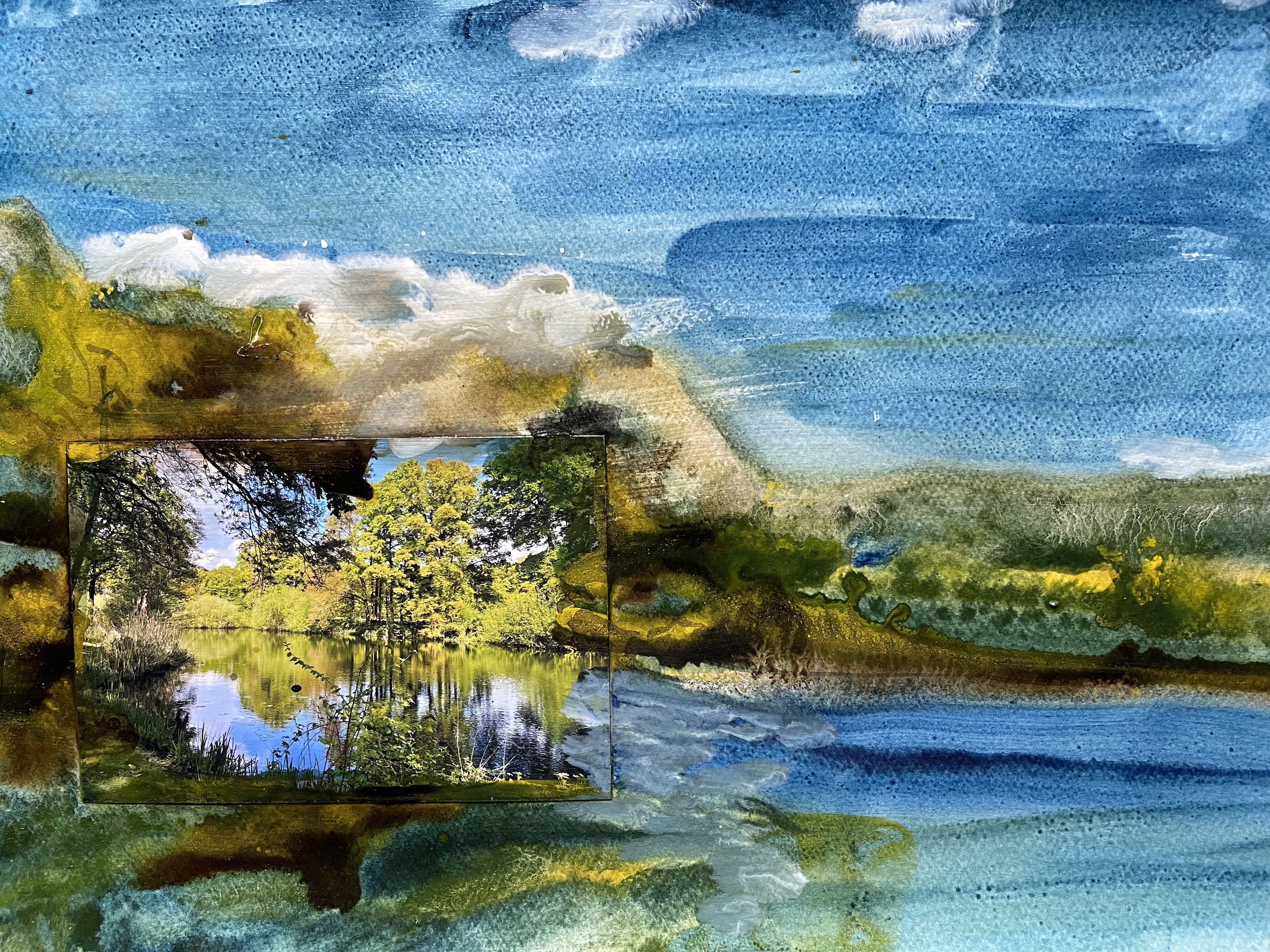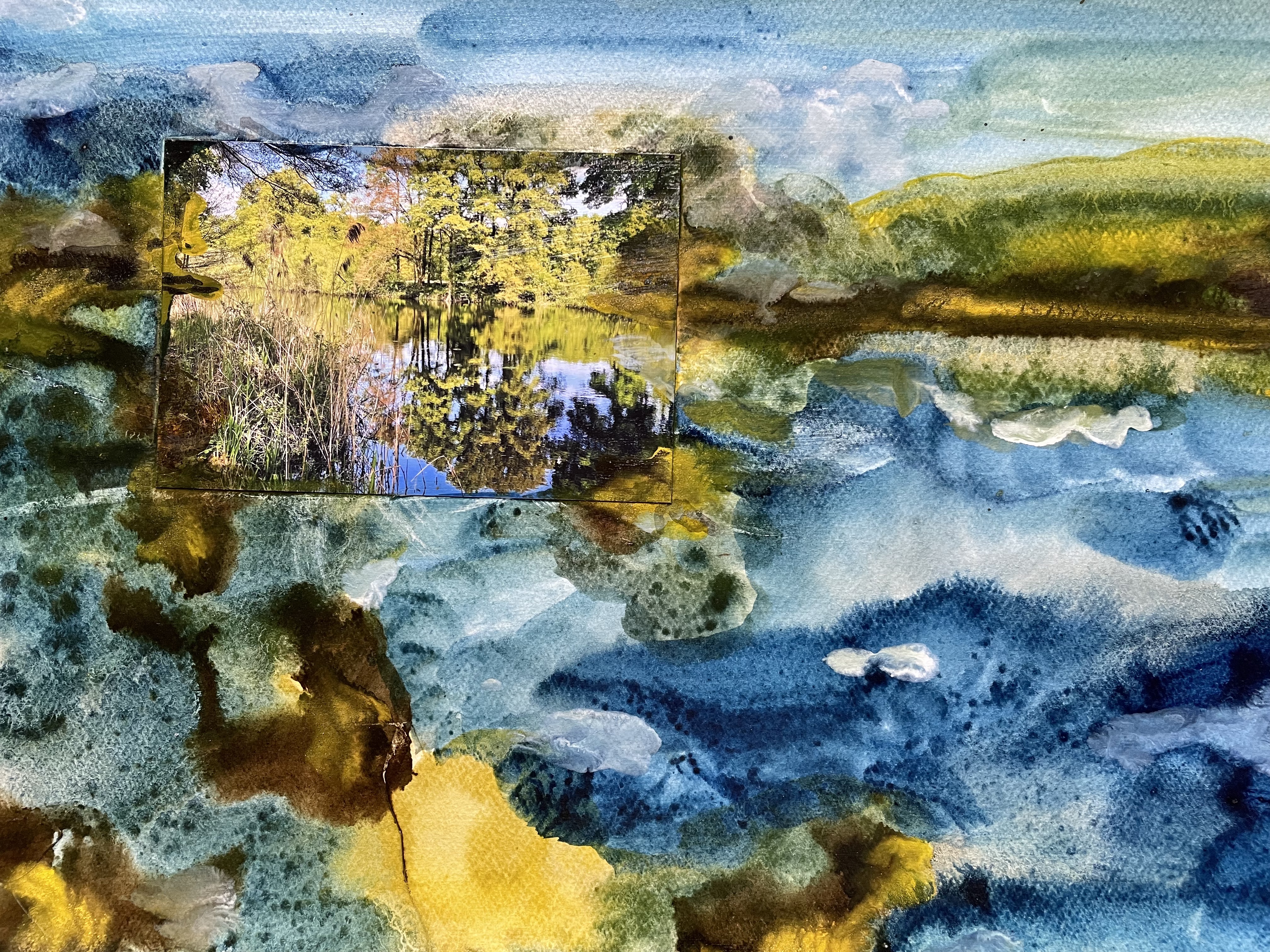 Foto’s van meertjes ontstaan door dijkdoorbraken en door een natuurlijk verloop, langs de dijk bij Heumen en Overasselt en bij Kleve Kermisdael, als uitgangspunt voor een abstract landschap. 2024 pigment op papier, foto, 30×40 cm allemaal te koop. Ook als kaart te bestellen. https://canandanann.exto.nl