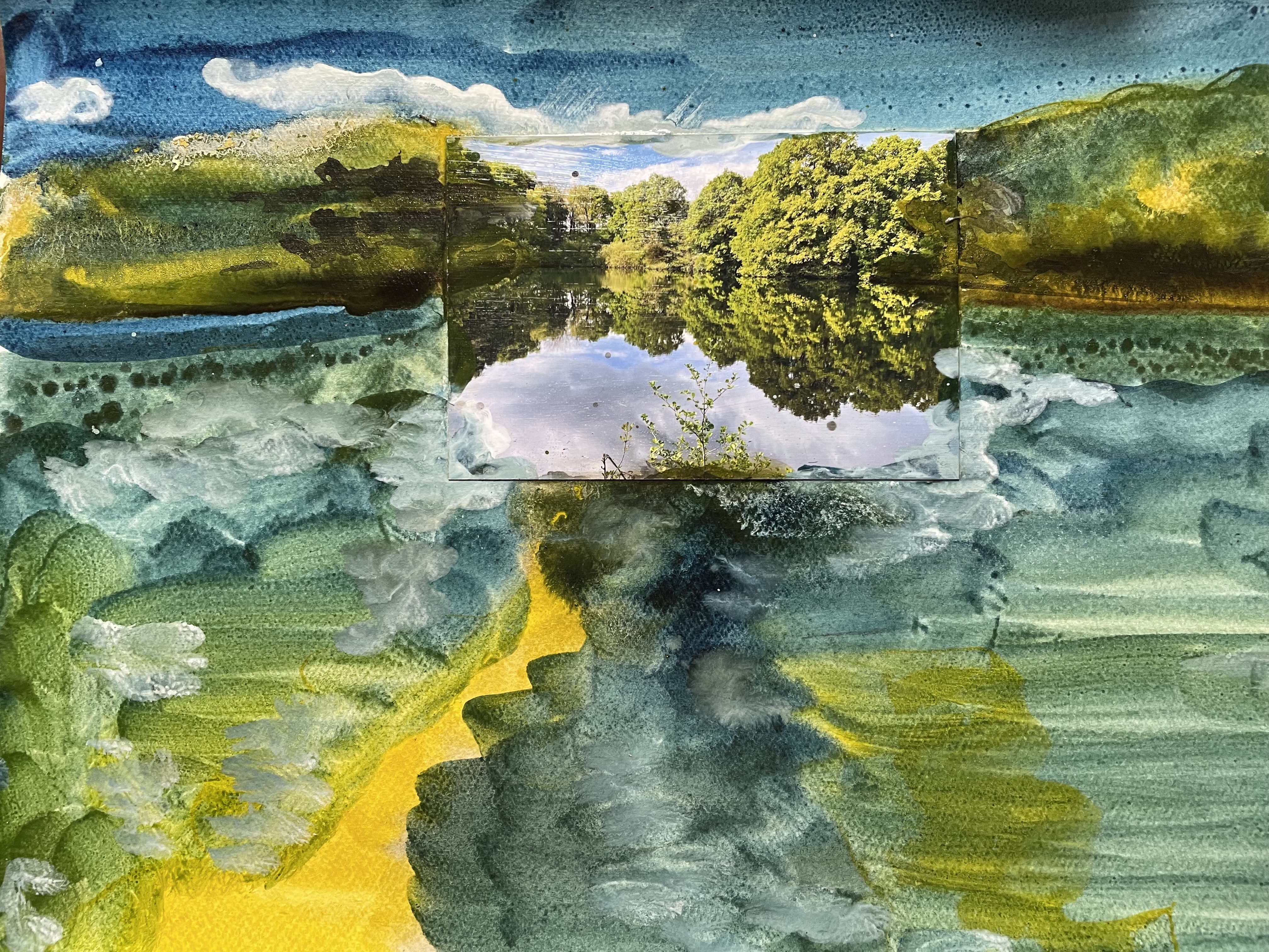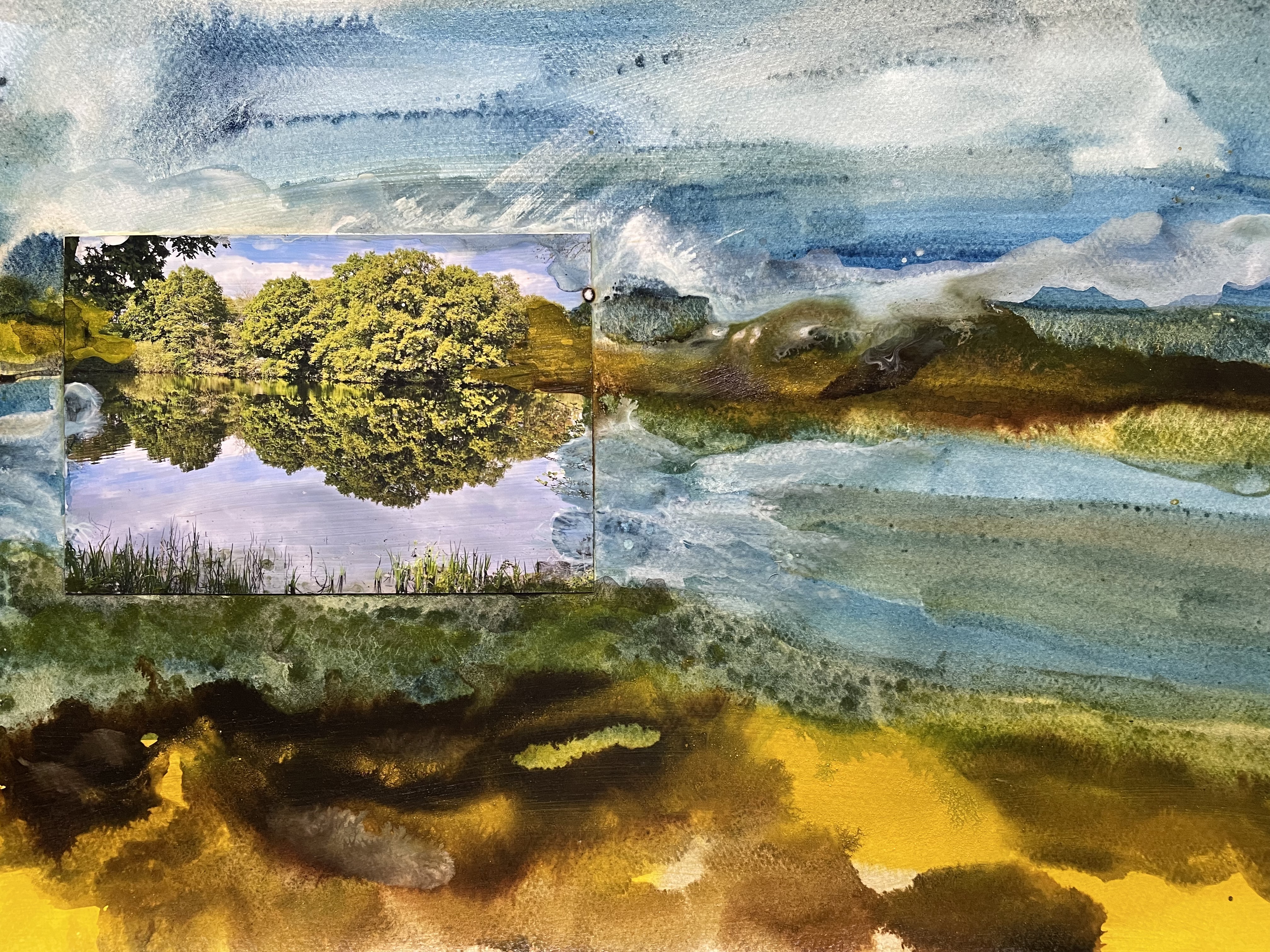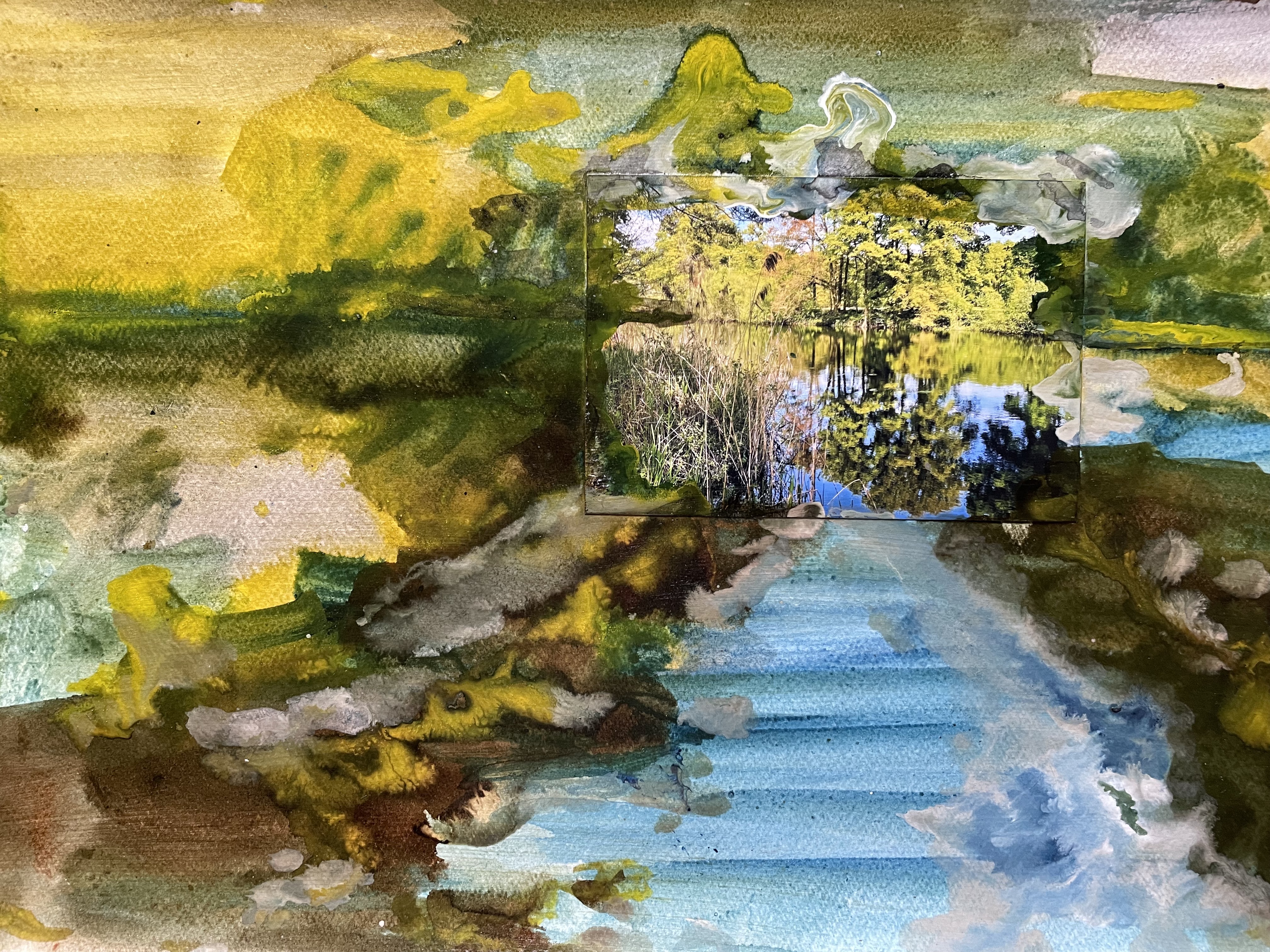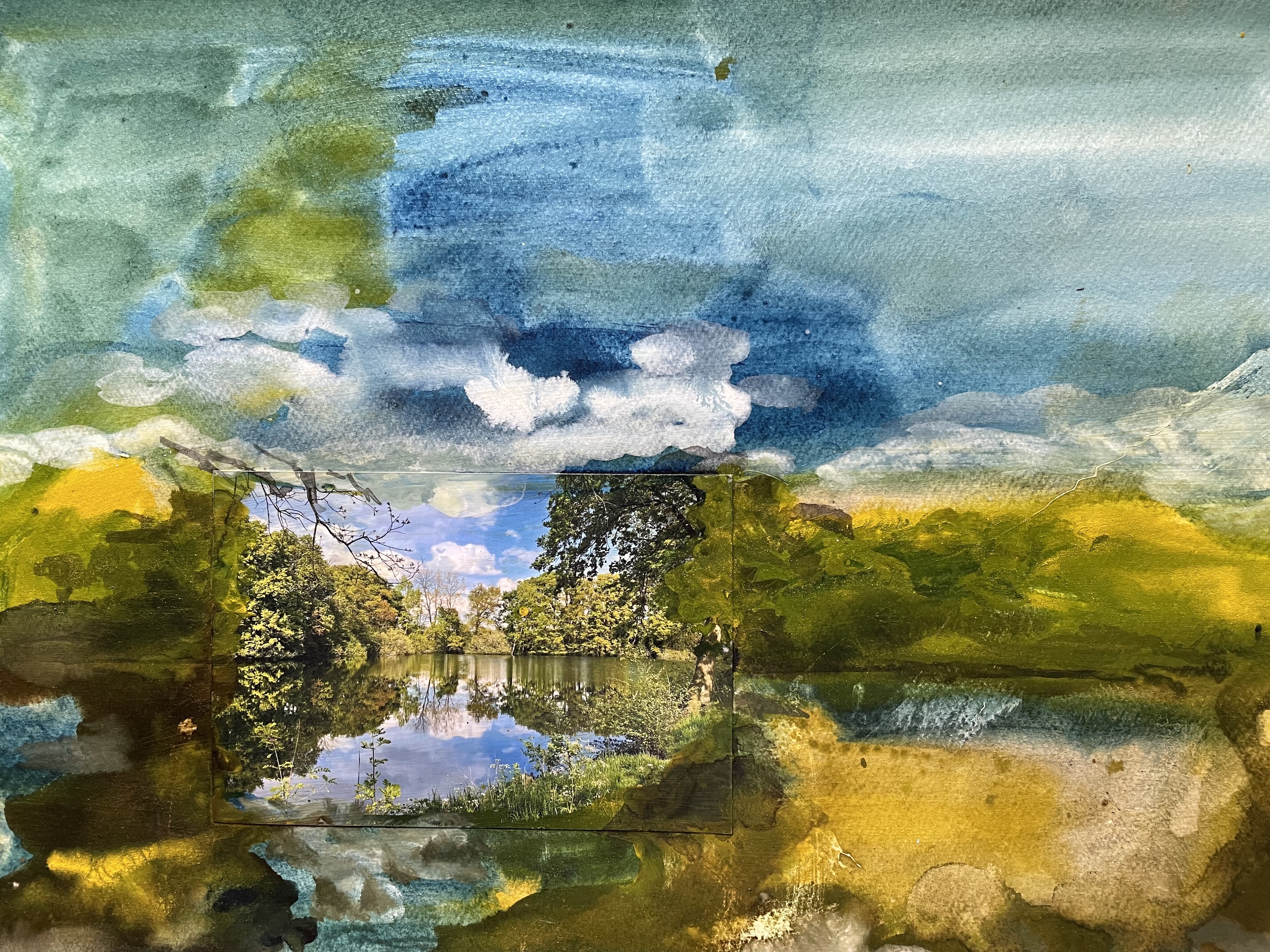 Foto’s van meertjes ontstaan door dijkdoorbraken en door een natuurlijk verloop, langs de dijk bij Heumen en Overasselt en bij Kleve Kermisdael, als uitgangspunt voor een abstract landschap. 2024 pigment op papier, foto, 30×40 cm allemaal te koop. Ook als kaart te bestellen. https://canandanann.exto.nl