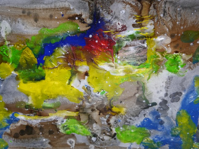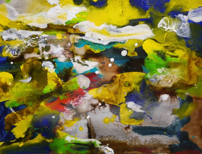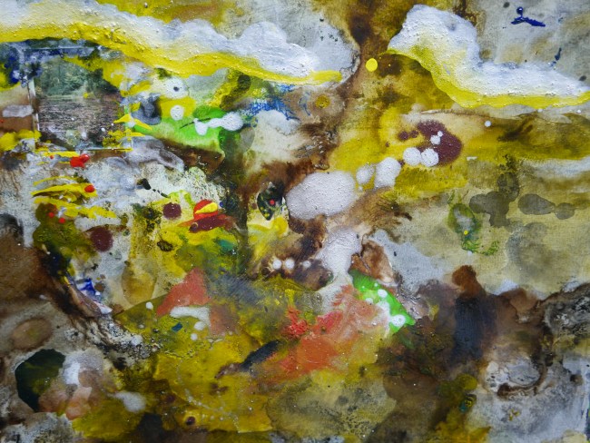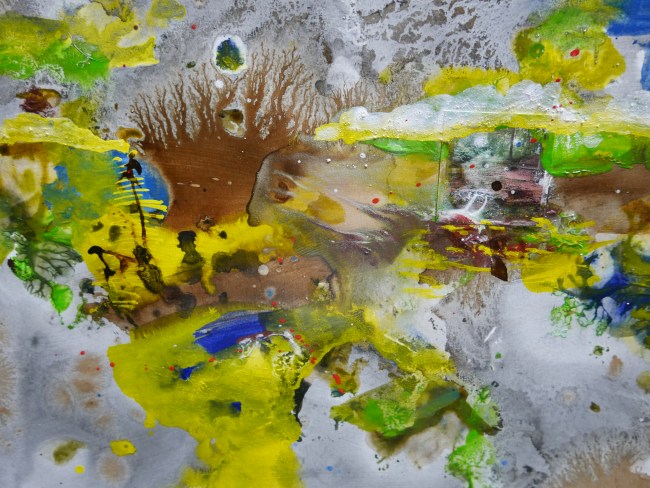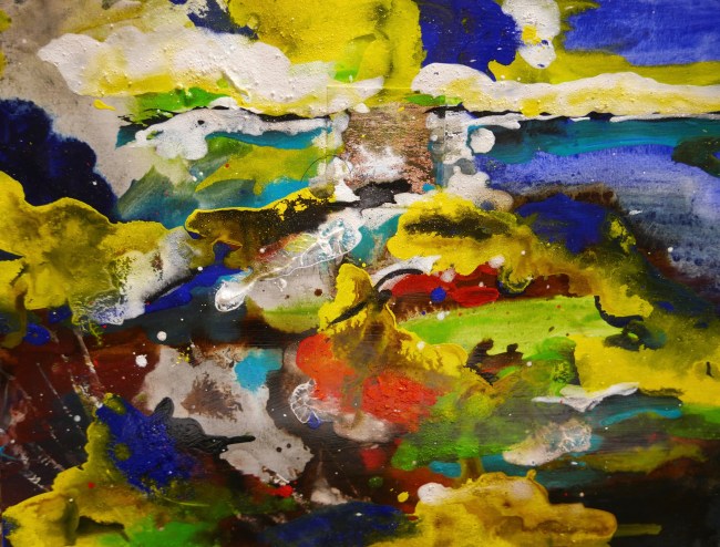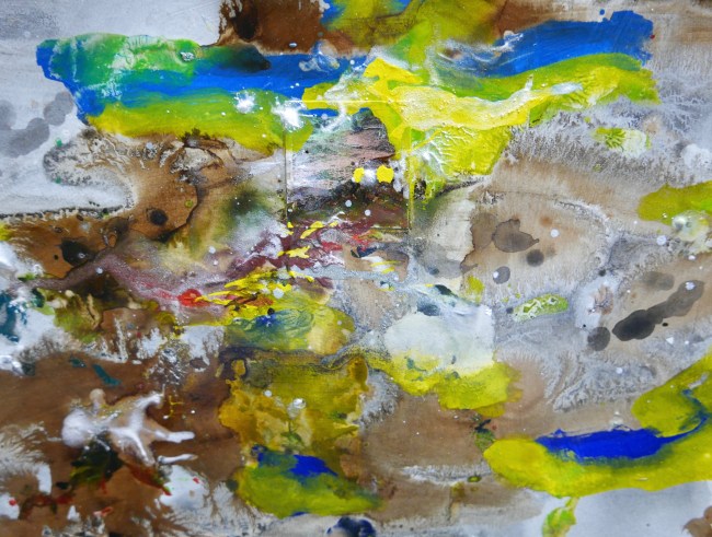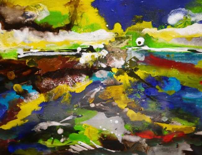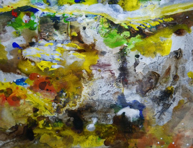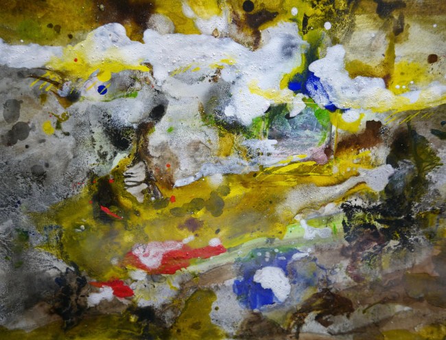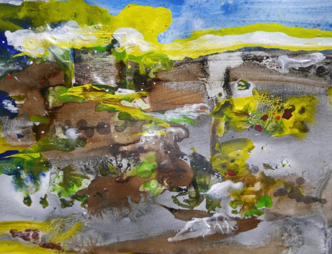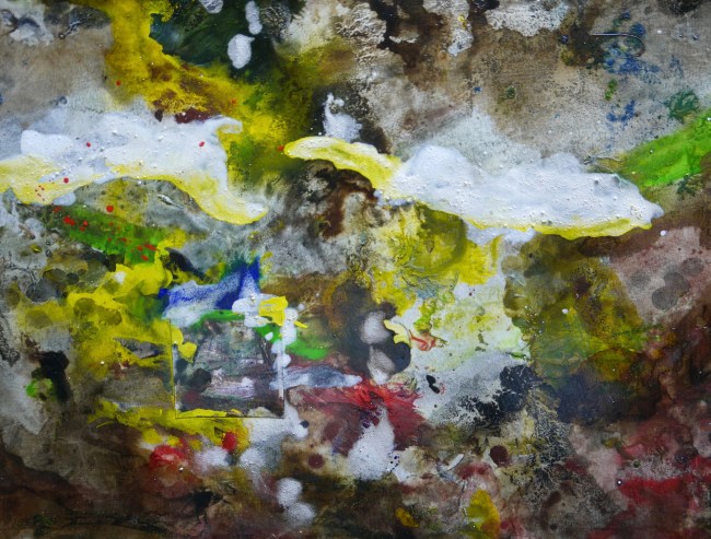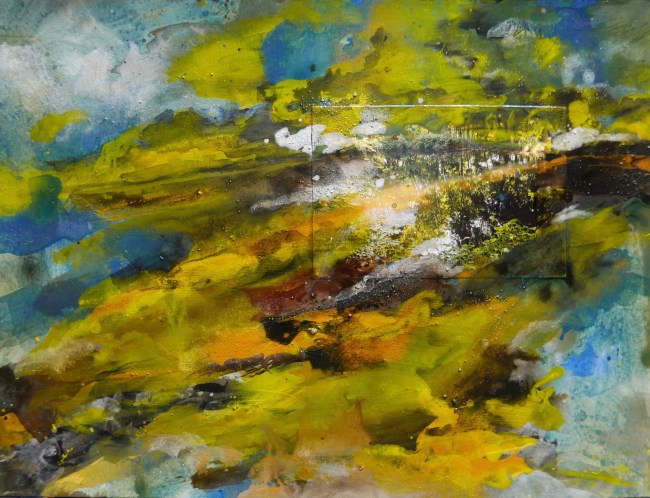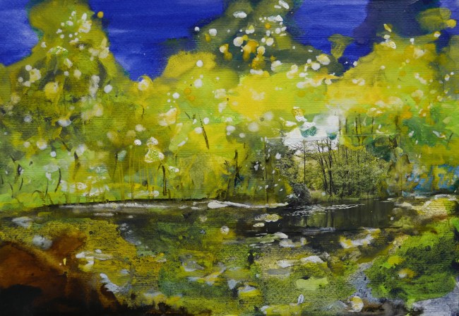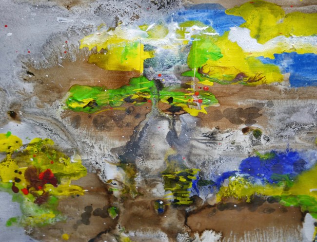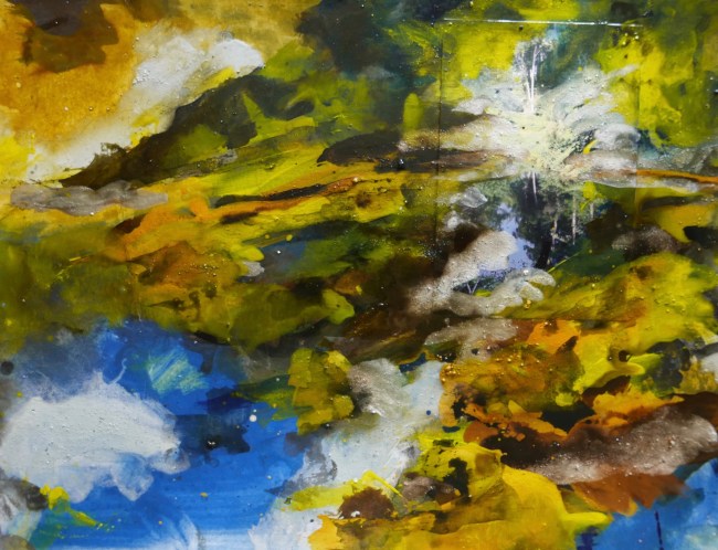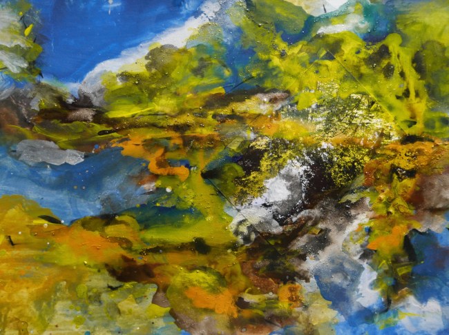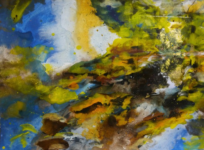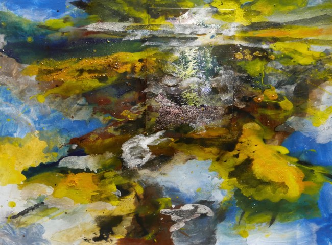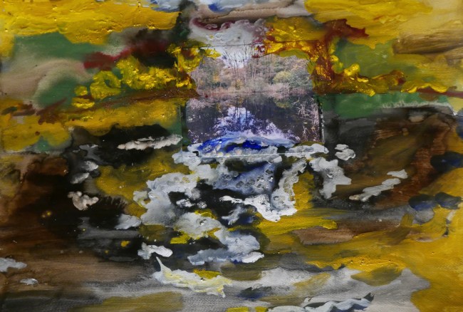 Plasmolen sint Jansberg – meertjes in het bos – aanleiding voor het maken van een aantal series met de foto als uitgangspunt. Pigment op papier, foto Jansberg.