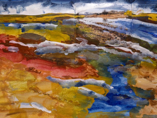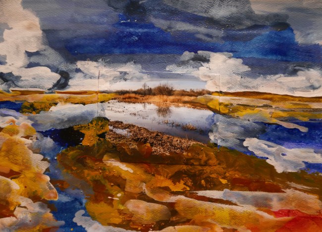 De mens bestaat uit water. Het zou een kleurloos en transparant beeld zijn, bijna onzichtbaar, ware het niet voor het stenen frame waarop het staat en de verschillende mysterieuze beelden die op het oppervlak worden weerspiegeld.