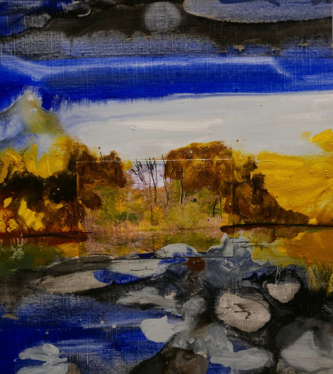 Landschappen gebaseerd op een foto van het moeras/natuurgebied Haterse of Overasseltse vennen, gemaakt in 2011, pigment en foto op papier 35x50 cm https://www.saatchiart.com/hacquinjean