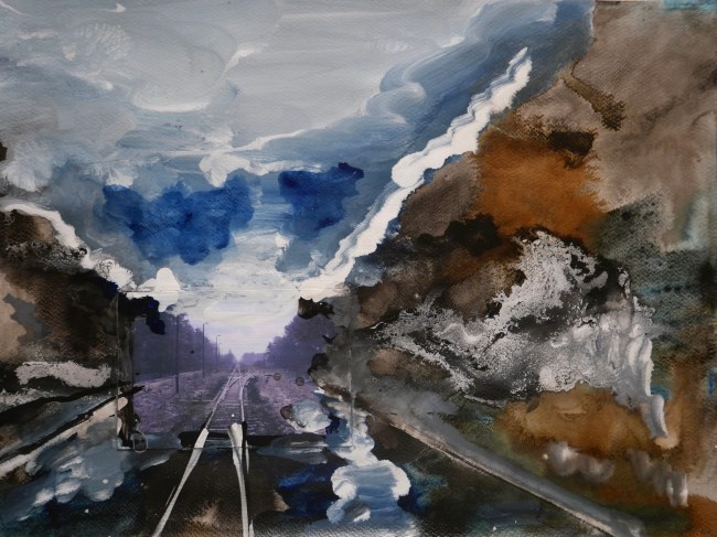 2025 foto uit docu over C. Lanzmann (Shoah) op arte 30×40 cm pigment, sumi-e, op papier – Treblinka