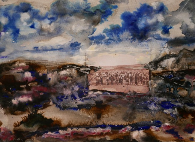 (vanuit het getto) – (foto docu Arte) – 56×76 cm – pigment, watercolor, sumi-e op papier