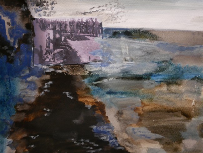 en de moord in Babi Yar op de Joodse bevolking van Kiev en omstreken 1941 – (foto docu Arte) – 48×36 – pigment, waterverf, sumi-e en inkt op papier