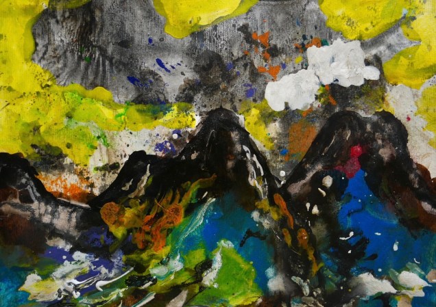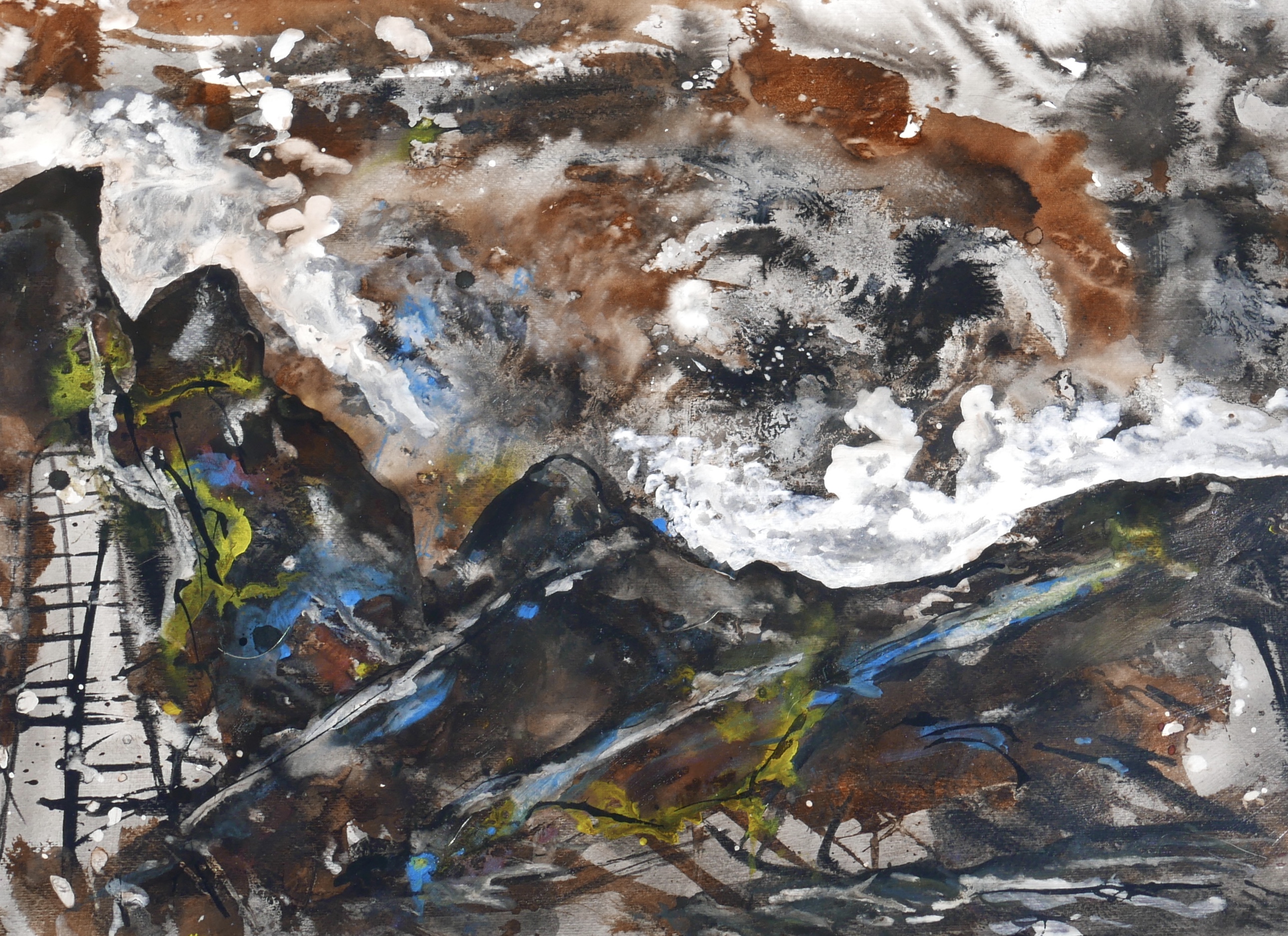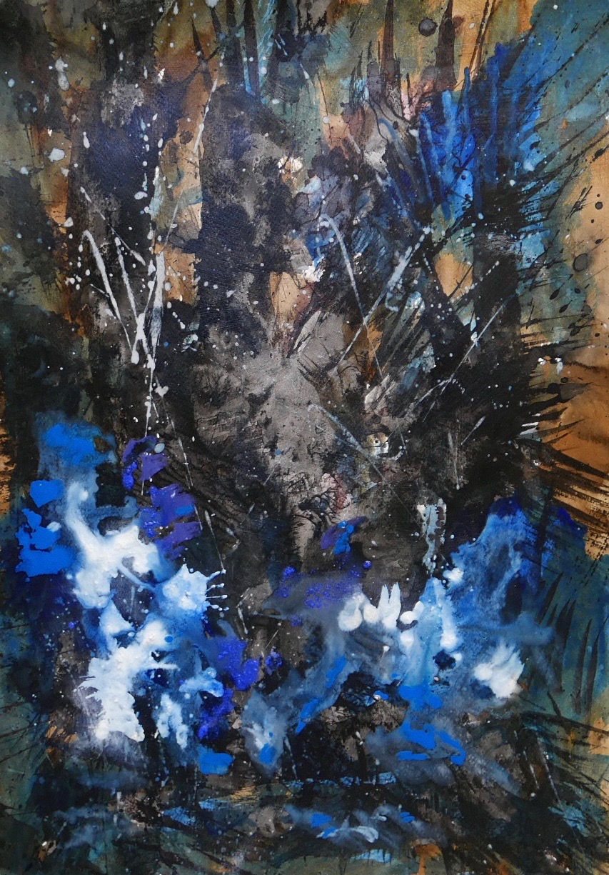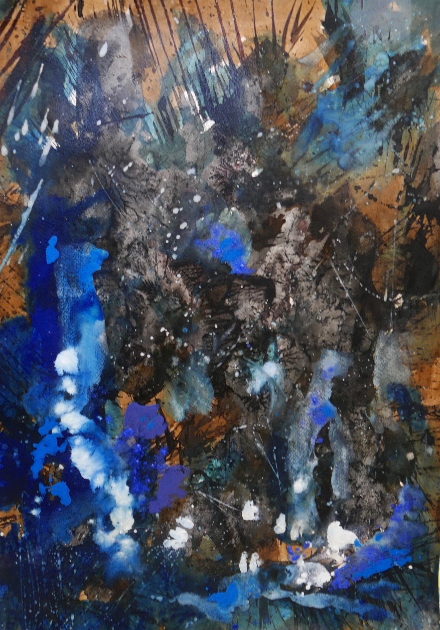 Corona paintings – abstracts and abstract landscapes March-June 2020 – pigment, sumi-e and ink on paper: 70×50 cm, 35×50 cm and 30×40 cm – (te koop)