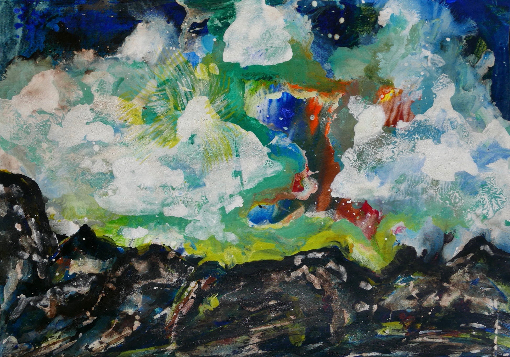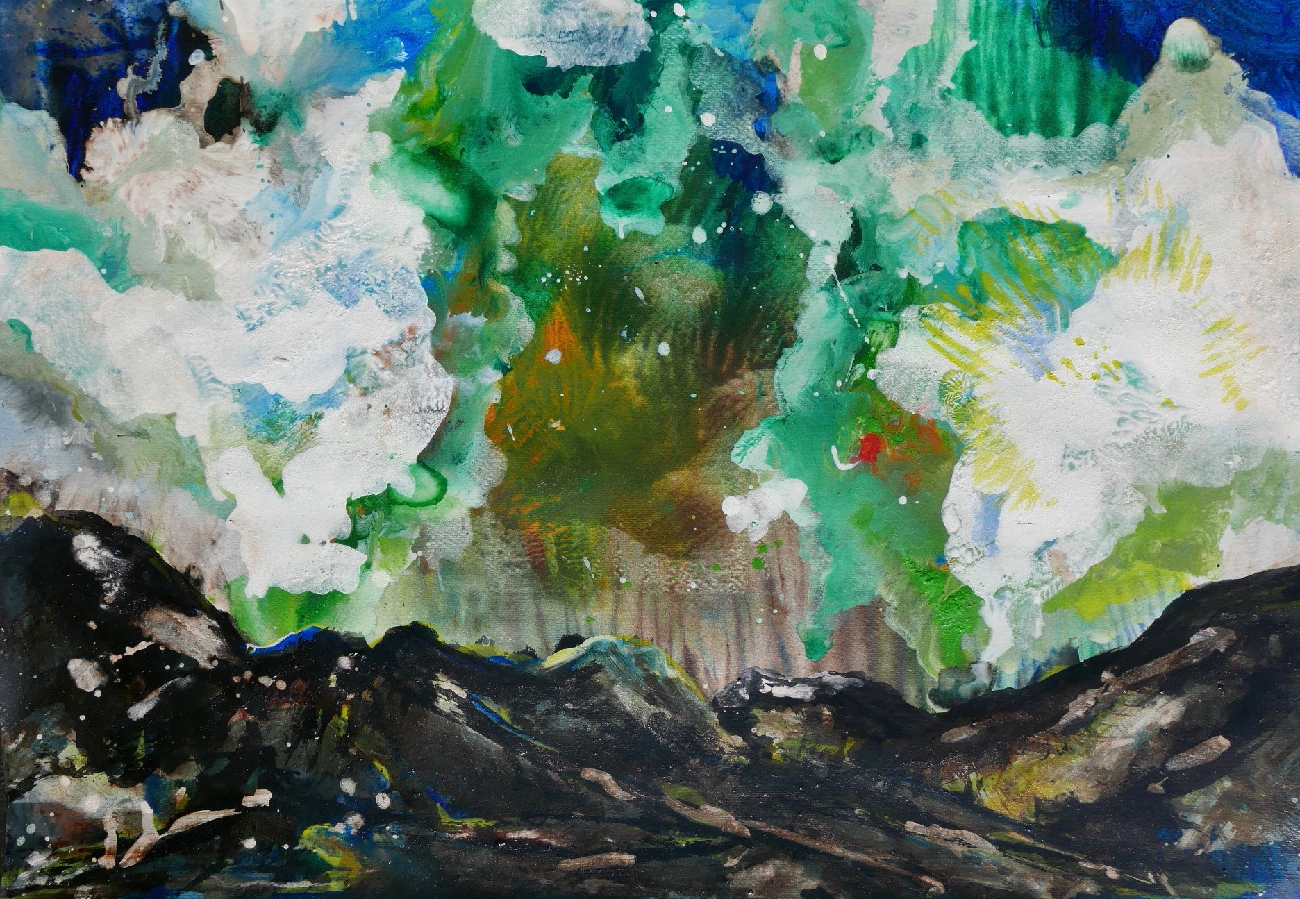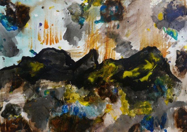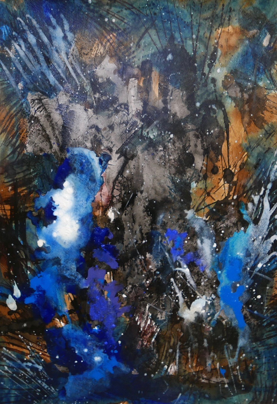 Corona paintings – abstracts and abstract landscapes March-June 2020 – pigment, sumi-e and ink on paper: 70×50 cm, 35×50 cm and 30×40 cm – (te koop)