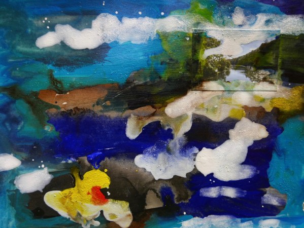In mijn landschappen is duidelijk te zien dat er ook een foto in verwerkt is. De overgangen zijn niet vloeiend alsof er geen verschil is. Dat mag ook. Zo zie je dat de foto ook een verhaal vertelt en dat het geschilderde eindproduct vanuit meerdere dimensies kan worden bekeken. Het werk noem ik geen collage. Hoewel ik wel landschappen heb gemaakt op basis van een collagetechniek door het toepassen van meerdere afbeeldingen.