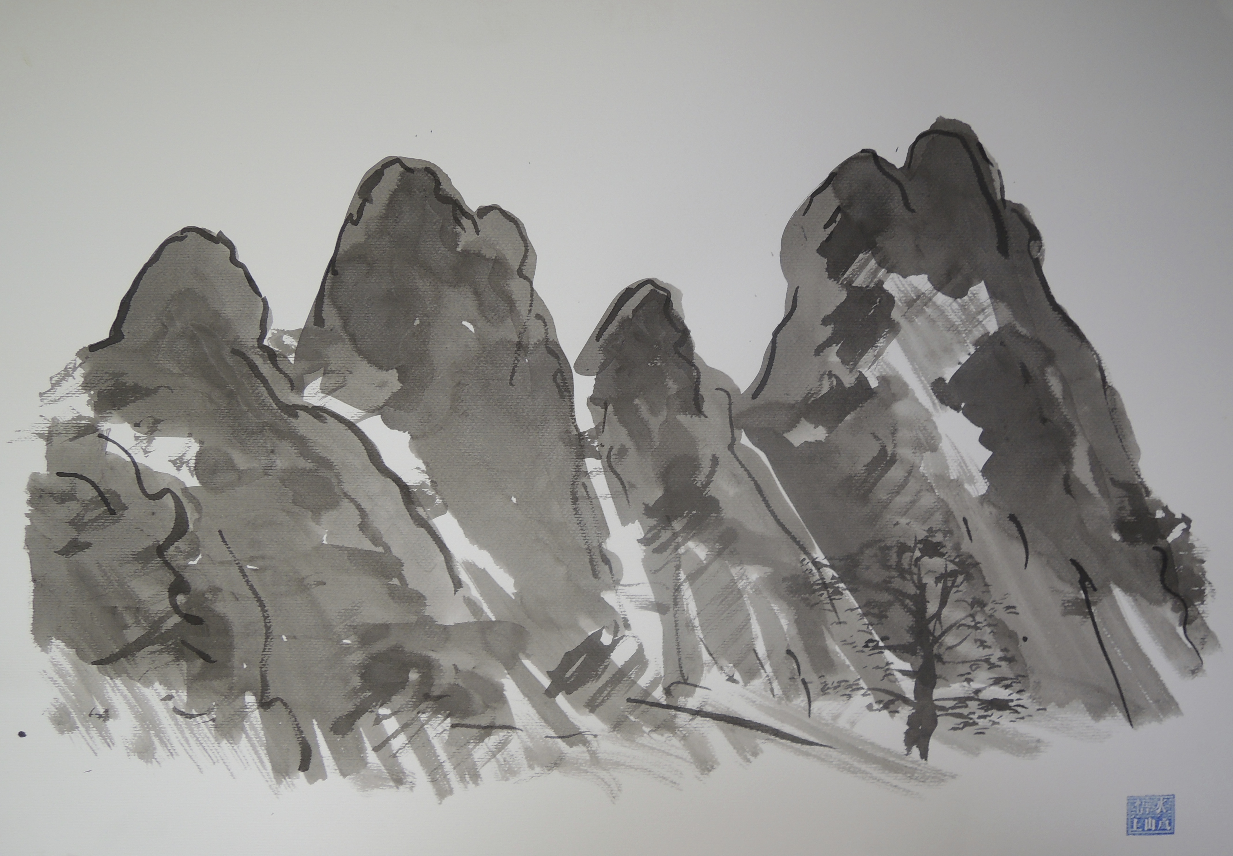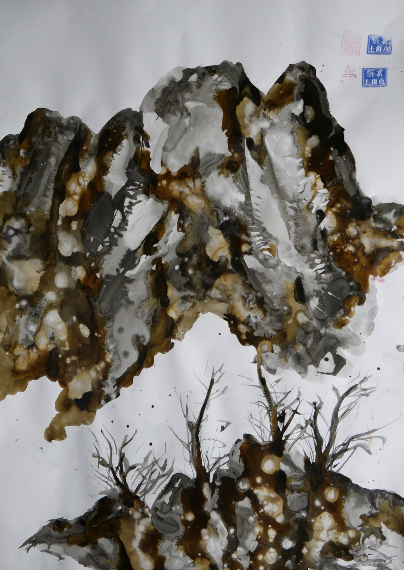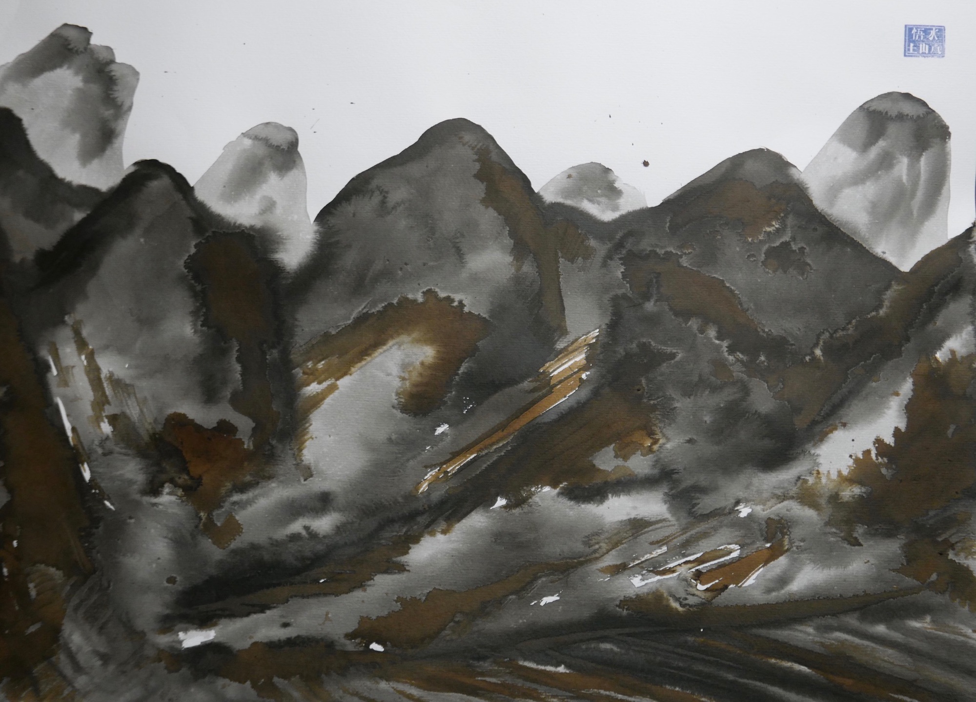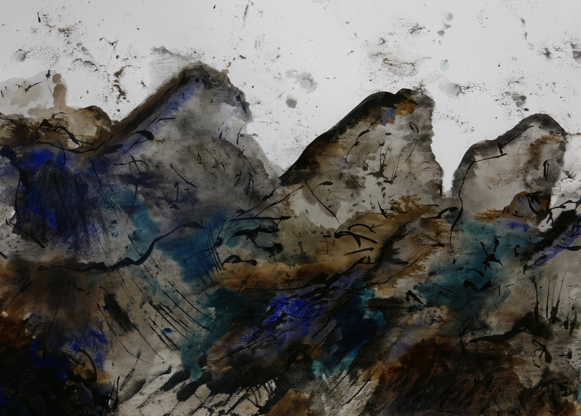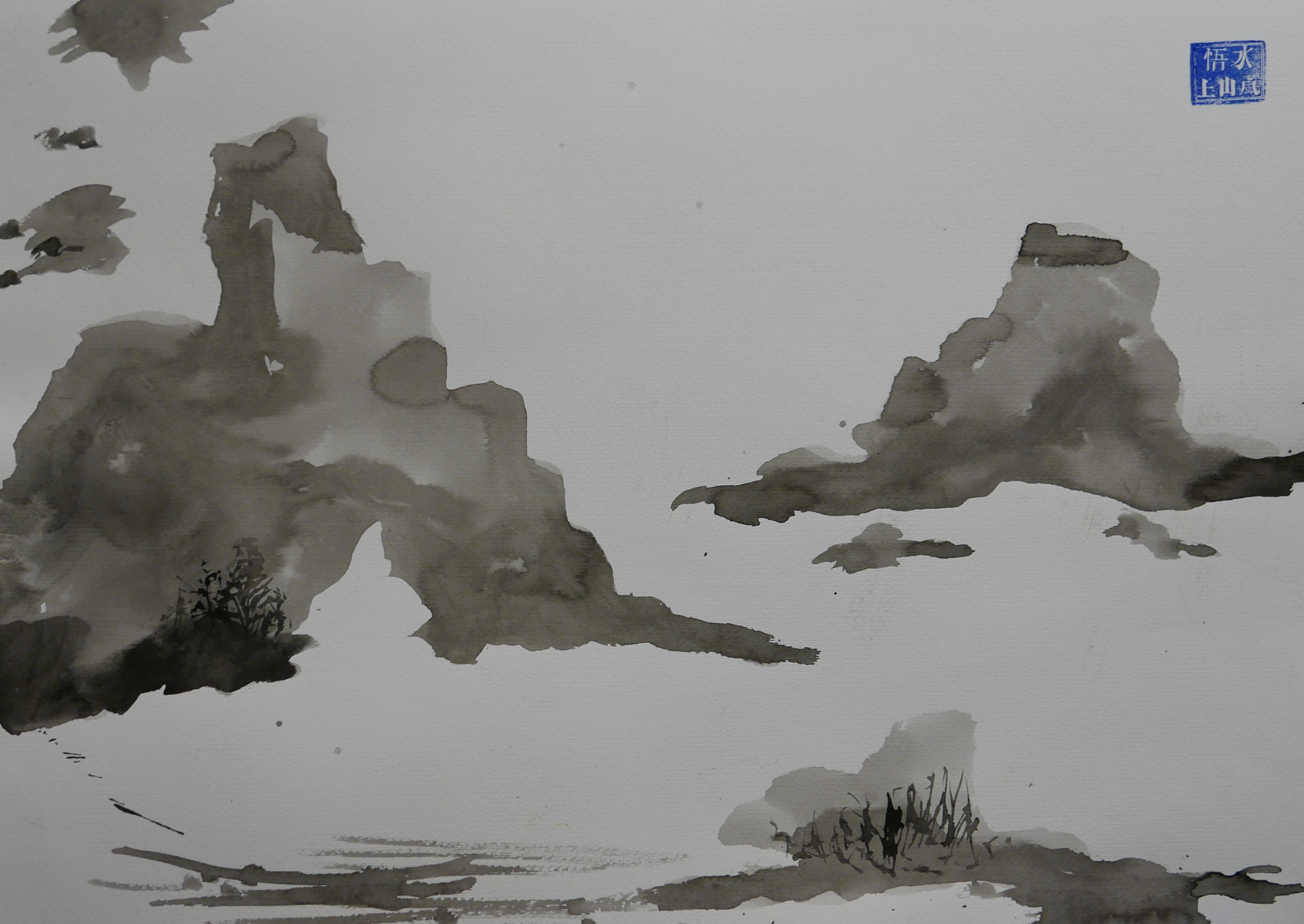 During several years I painted landscapes with sumi-e, ink and pigments on paper – inspired by Japanse and Chinese landscape painting. Different measures: 65×50; 70×50 and smaller