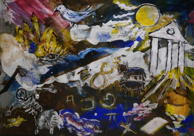 10 schilderingen nav zijn gedicht in 10 coupletten: 2025 pigment, sumi-e, oilpastel, watercolour, pastel, inkt, houtskool op papier – gevernisd, 50×35 cm